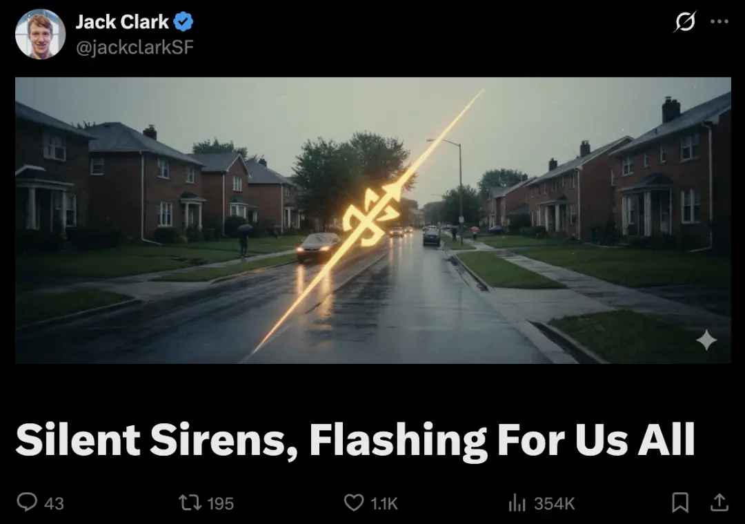最近,Anthropic的联合创始人、斯坦福大学AI指数联席主席Jack Clark,把这种状态形容成「沉默的警报器」: