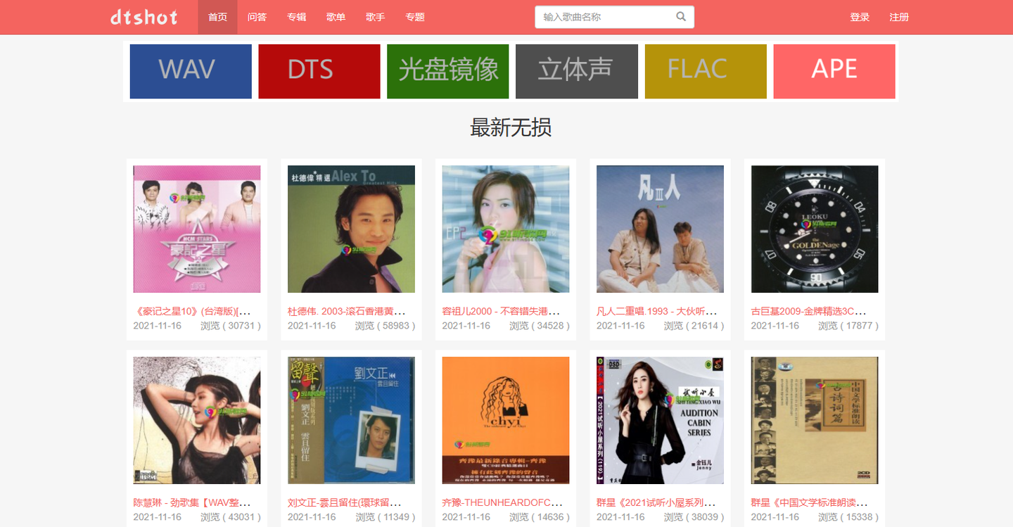 一个页面风格比较复古的音乐网站,提供了大量的免费老歌,可以找到很多经典的粤语曲目,它将所有的歌曲都按照专辑的方式展示在页面,并且还提供了专辑封面,非常有年代感。