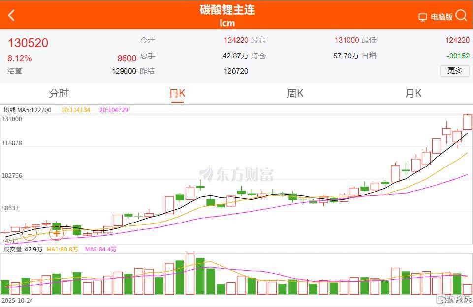 截止12月26日,碳酸锂主力合约收盘大涨8.12%,强势站上13万/吨关口,创下2023年11月以来的新高,年内累计涨幅已达到68.72%。