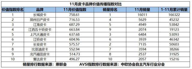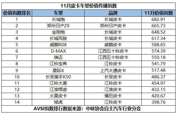 随着中国皮卡市场持续向乘用化、生活化转型,品牌与车型的传播力已成为衡量市场竞争力的重要标尺。12月25日,中国欧洲经济技术合作协会自主汽车行业分会与自主汽车网联合发布了11月皮卡品牌及车型价值传播指数(AVSI),数据揭示出新的竞争格局——长城皮卡依旧领跑,但市场暗流涌动,新老品牌之间的角力正进入深水区。