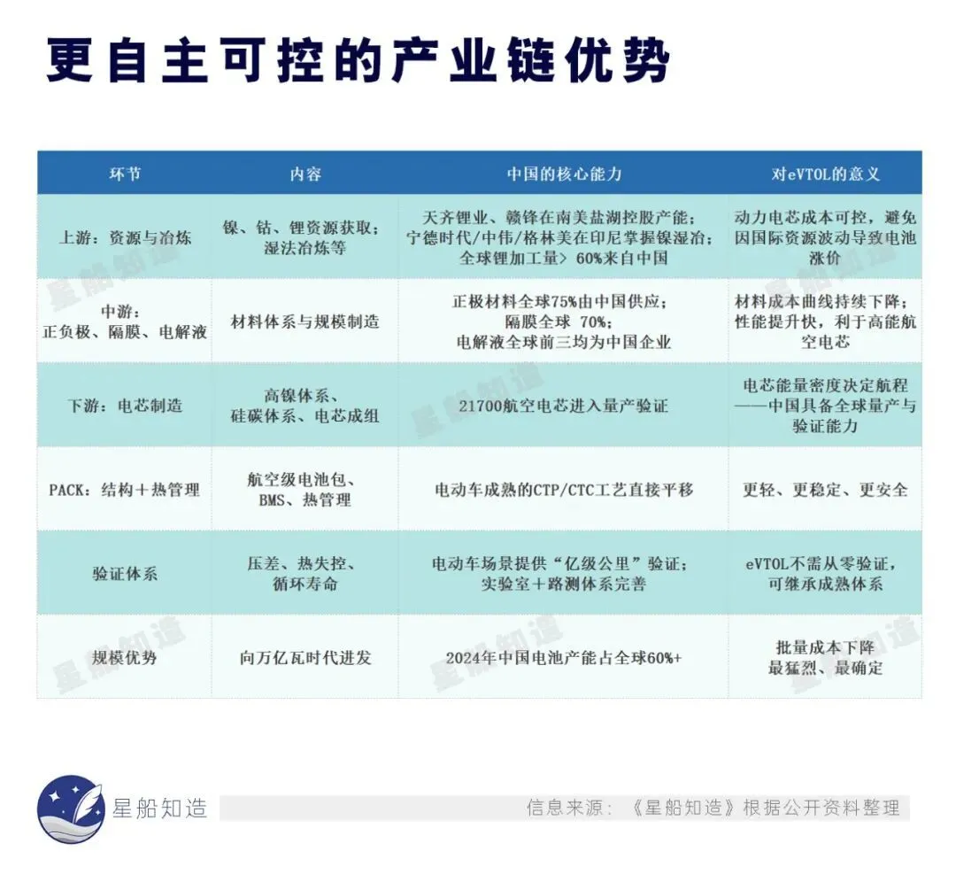 电池:对于欧美,电池是eVTOL最大的成本壁垒;但在中国,它是一条成熟的、规模效应明确的工业链。
