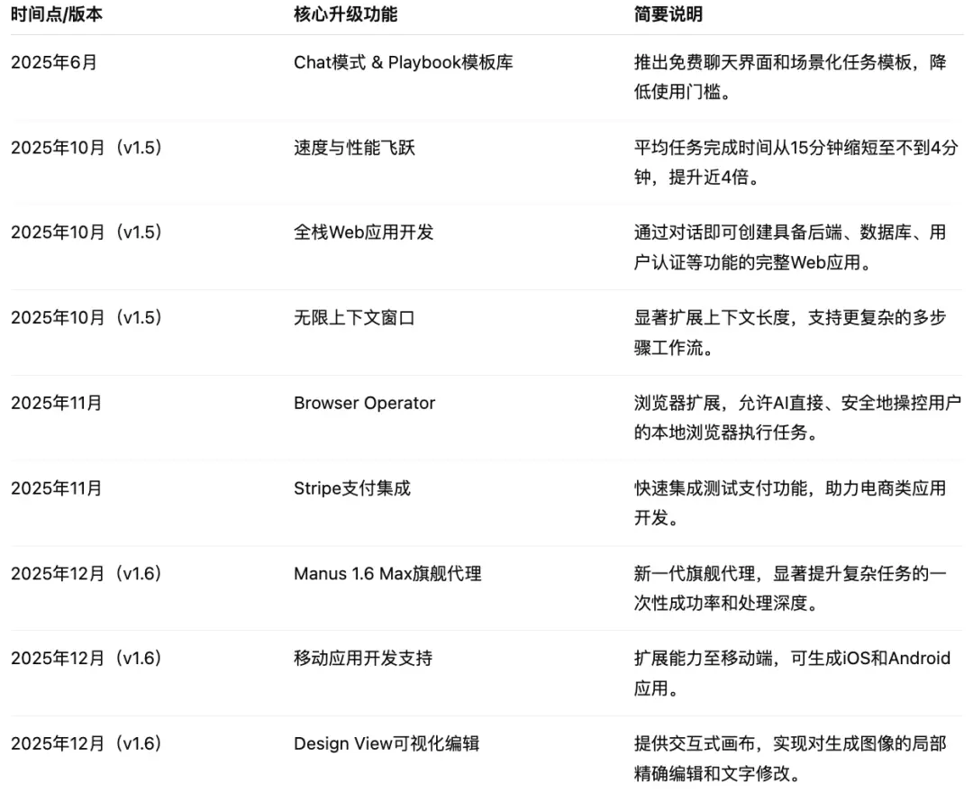 后续,Manus沉寂了一阵子,但在10月起开始频繁迭代更新。