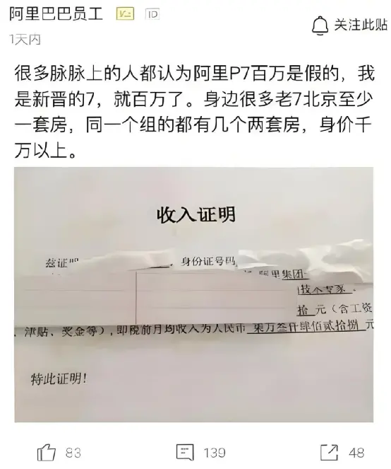 曾有自称阿里云员工的网友,列出了自己从2015年-2021年的薪资历程,仅6年时间,这名阿里员工的薪资便涨了近9倍。