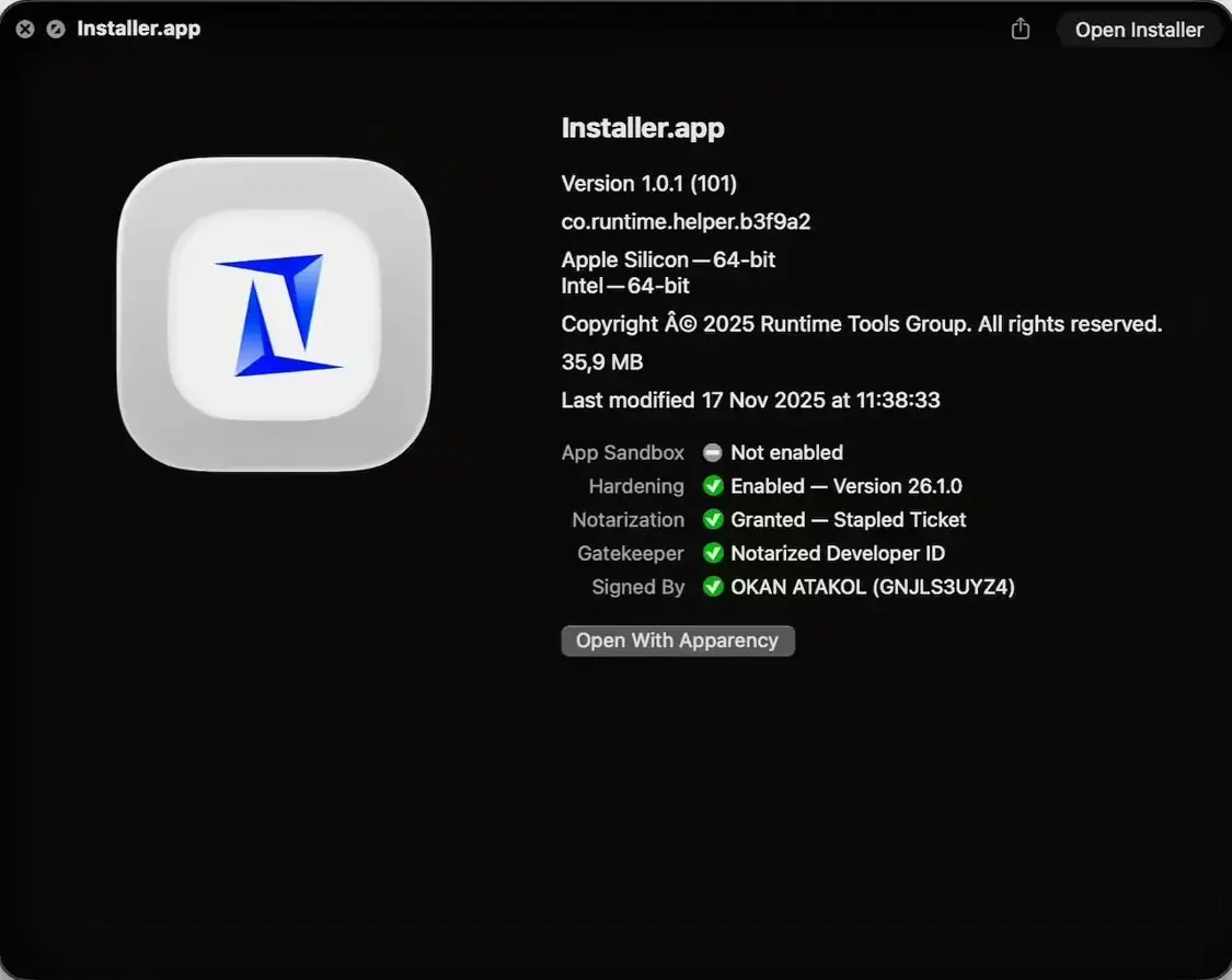 Jamf 指出,尽管 MacSync Stealer 本身并非新出现的威胁,但此次案例显示其作者仍在持续演进其投递方式。研究人员此前尚未观察到这种以 Swift 编写、完成代码签名和公证、并能够静默获取和执行第二阶段载荷的投递程序。该变化反映了 macOS 恶意软件生态中的一个更广泛趋势,即攻击者正试图将恶意程序伪装成已签名、公证的合法应用,从而降低早期被发现的风险。