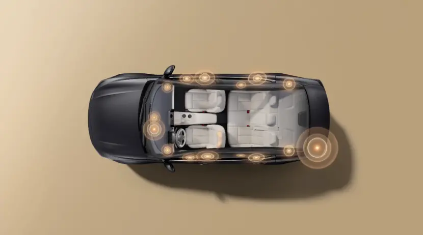 在听觉体验层面,天籁·鸿蒙座舱搭载HUAWEI SOUND顶级音响系统,配合17个精心调校的扬声器,包括专为天籁定制的可升降星环散射体,共同构建沉浸式声学空间。