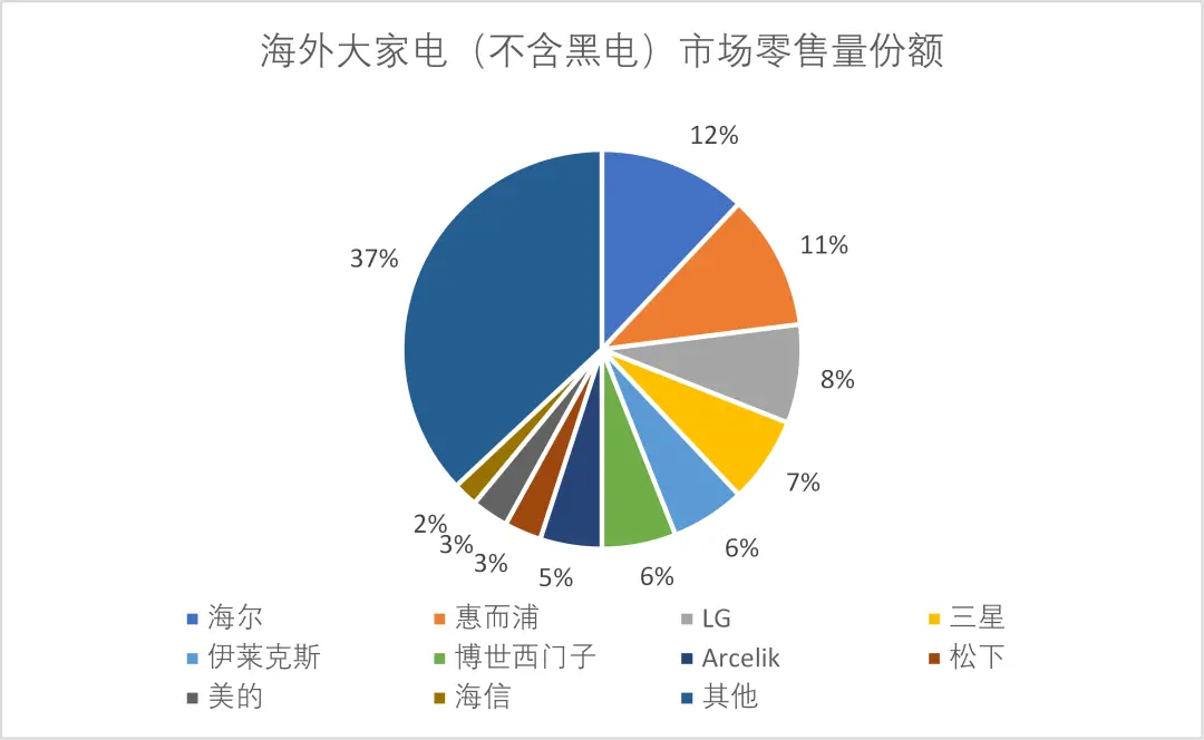 欧美等成熟市场是全球家电品牌的溢价高地,但长期被本土品牌主导,中国家电在此区域的零售份额仍处于低位(西欧约 7%)。