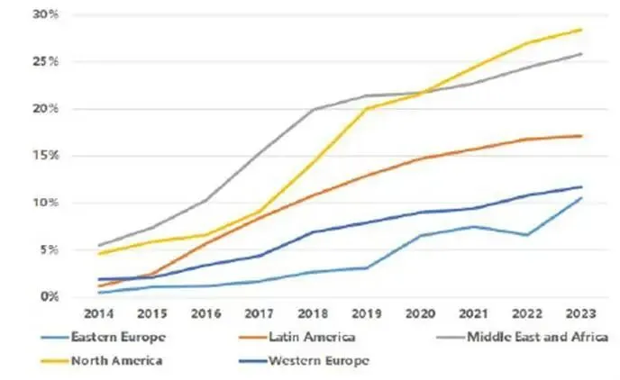 但新的机会体现在,海外渠道在悄然生变——电商渗透率持续攀升,海外消费者对线上购家电的接受度已充分培育,这可能成为家电企业渠道建设的核心机遇,这一趋势与国内早期电商发展轨迹高度契合。