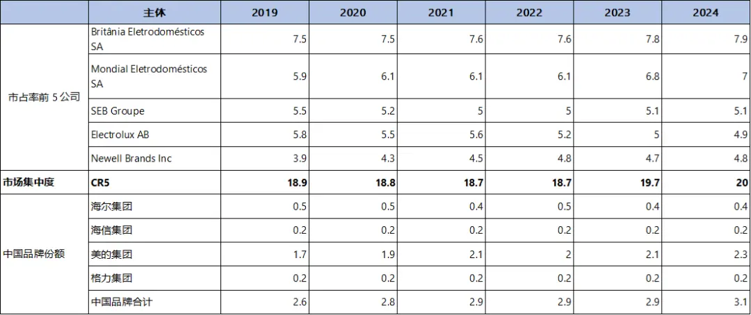 图:拉美家电整体竞争格局数据来源:欧睿