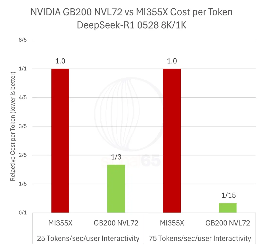 来自Signal65的一份最新详尽报告揭示了这个现实,一定条件下生成同样数量的token,英伟达的成本只有AMD的十五分之一。