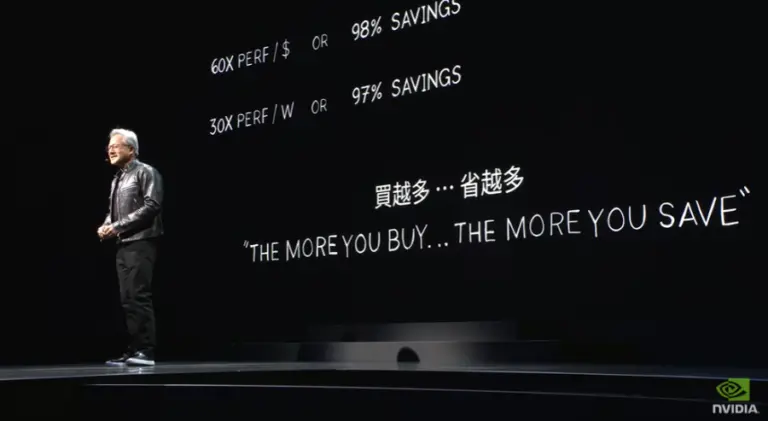 黄仁勋的“买的越多,省的越多”原来是真的。