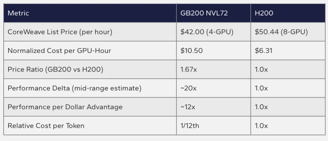 而GB200 NVL72价格仅上涨1.67倍,换算下来每美元性能提升约12倍,单token成本降至H200的十二分之一。