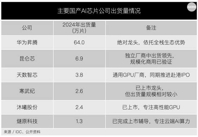 衡量一个芯片玩家实力的,最直接的指标是出货量。根据IDC的数据,2024年,中国加速计算芯片市场的牌局基本是这样的: