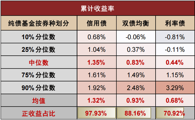 图表6:细分品类纯债基金的2025YTD业绩对比