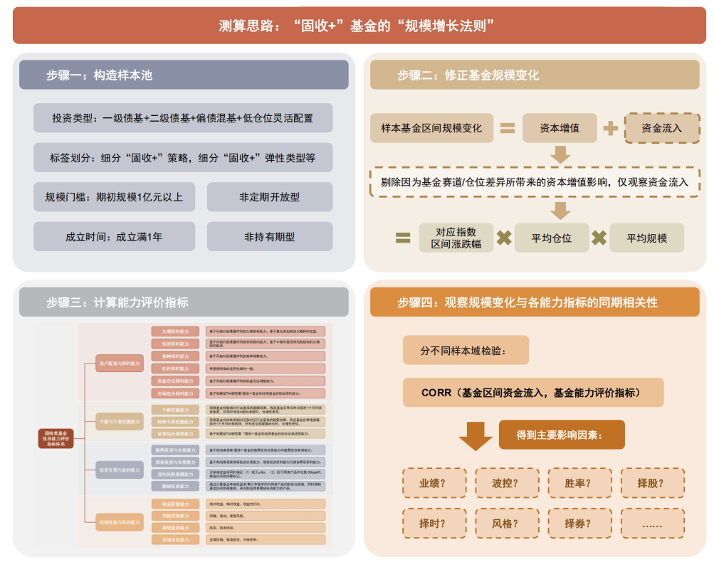 “固收+”基金的“规模增长法则”主要测算思路如上图所示。