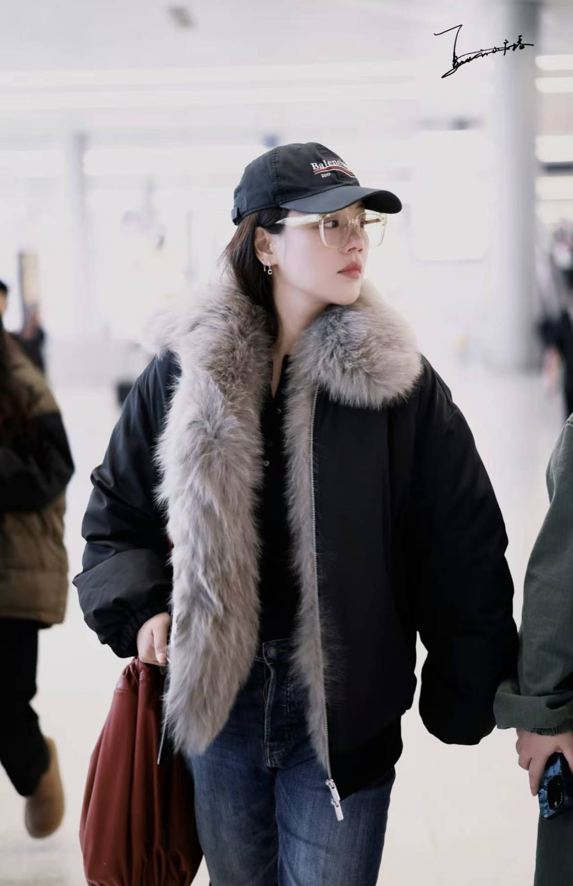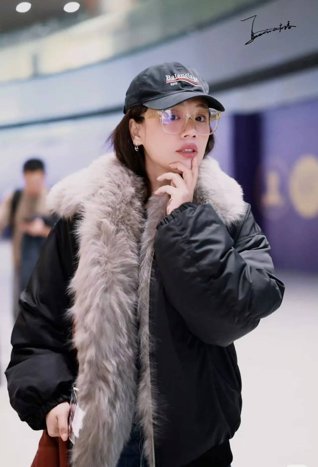 马思纯另辟蹊径,潮牌AVVENN的翻毛羽绒夹克,贵气又随性,个性十足。羽绒服搭配大毛领,瞬间把基础款穿出“豪门姐姐”的气场,完全避开了羽绒服的臃肿感。棒球帽+透明眼镜的组合,让贵气感多了几分休闲随性。