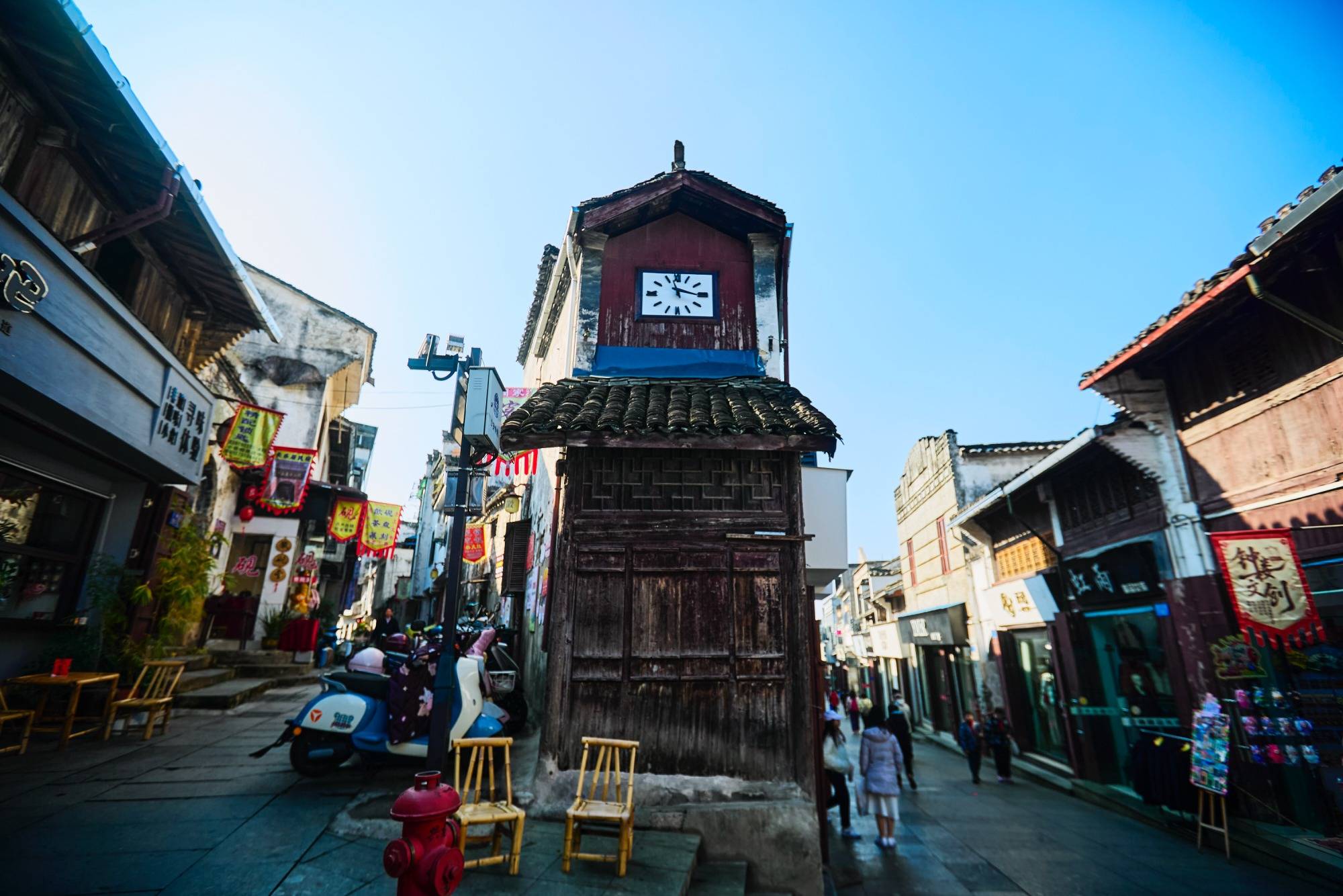 走进古城街巷,青石板路布满沧桑,两侧店铺还像旧时一样挂着帘招,木质钟楼古老而朴拙,钟面的指针仿佛定格住属于徽州的慢时光。