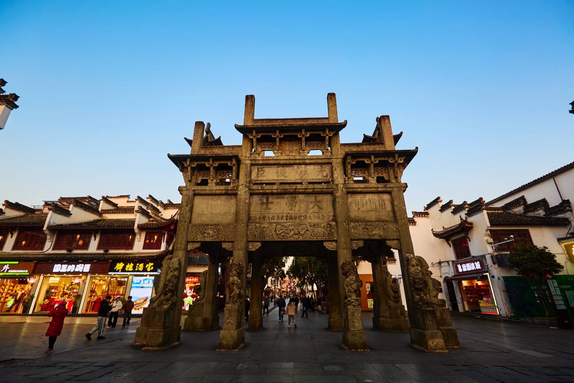 许多人都为这座建于明万历年间的许国石坊特意前来,它是全国唯一一座八脚牌坊,是古城的标志性建筑。天色渐暗,青灰色石坊静静伫立,石雕上的纹样精美细致,石坊身后是长街一条,是行人喧嚣,是高低错落的粉墙黛瓦,古徽州的繁华与厚重都定格在此时。