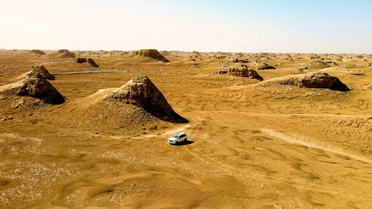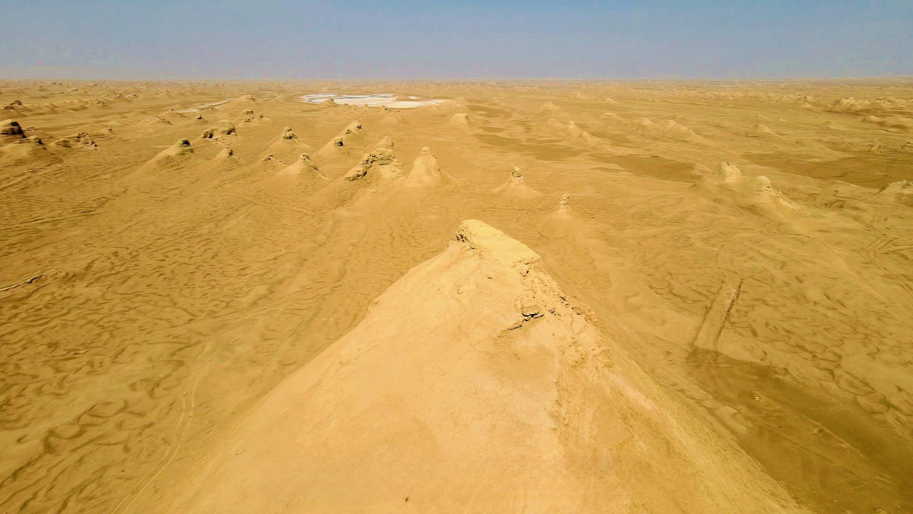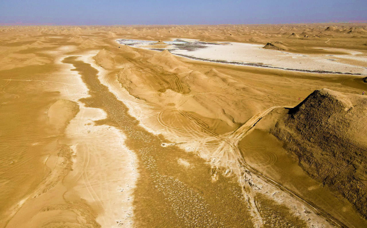 当时这里还是烟波浩渺的古湖,随着地壳抬升,古湖干涸,裸露的湖床在风沙的雕刻下,形成了如今这般模样。