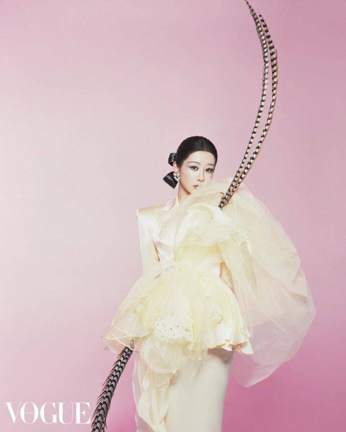 黄裙的柔纱肌理,撞着她抬眼时的亮;黑裙的冷调剪裁,碰着她垂手时的软 —— 没有硬端的时尚感,是东方柔里的锐,刚好接住了 VOGUE 的场,也衬得张家诚镜头下的光影,成了 “柔与锐的过渡色”。