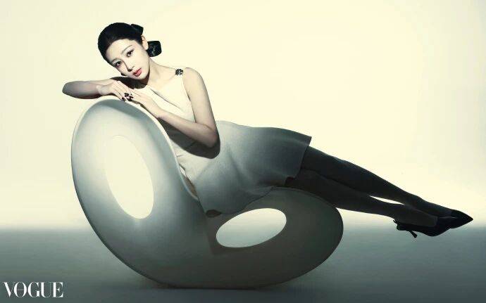 妆面更是 “韵里藏锐”:眼妆用粉调眼影裹住眼尾的软,却用细黑眼线勾出瞳的亮;唇色是 “暖粉叠冷棕”,甜里透点冷,让妆面既不丢甜妹底色,又撑得起大刊的时尚质感 —— 不是 “甜妹装时尚”,是她的灵,让 VOGUE 的锐有了东方的柔底。