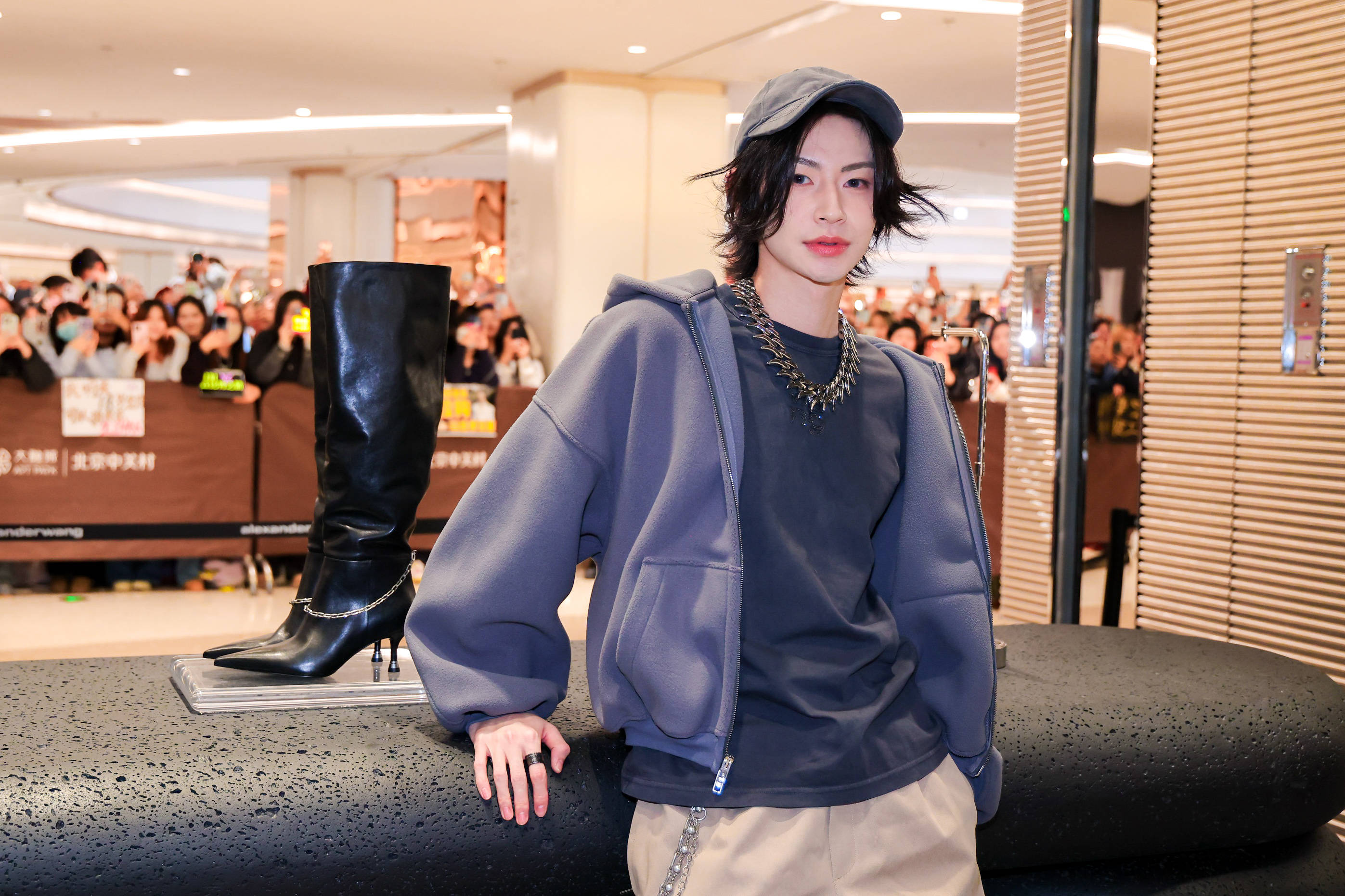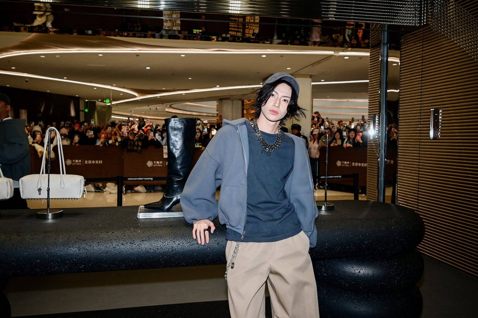 与此同时,中关村大融城的商场中庭正为另一场重头戏做最后准备——作为庆祝商场东区盛大开业的重要环节,一场公开的艺人见面会即将上演。当小鬼-王琳凯与张予曦现身中庭时,现场气氛达到高潮。他们与现场观众亲切互动,分享了参与此次活动的感受,将alexanderwang的时尚能量传递给更广泛的公众。