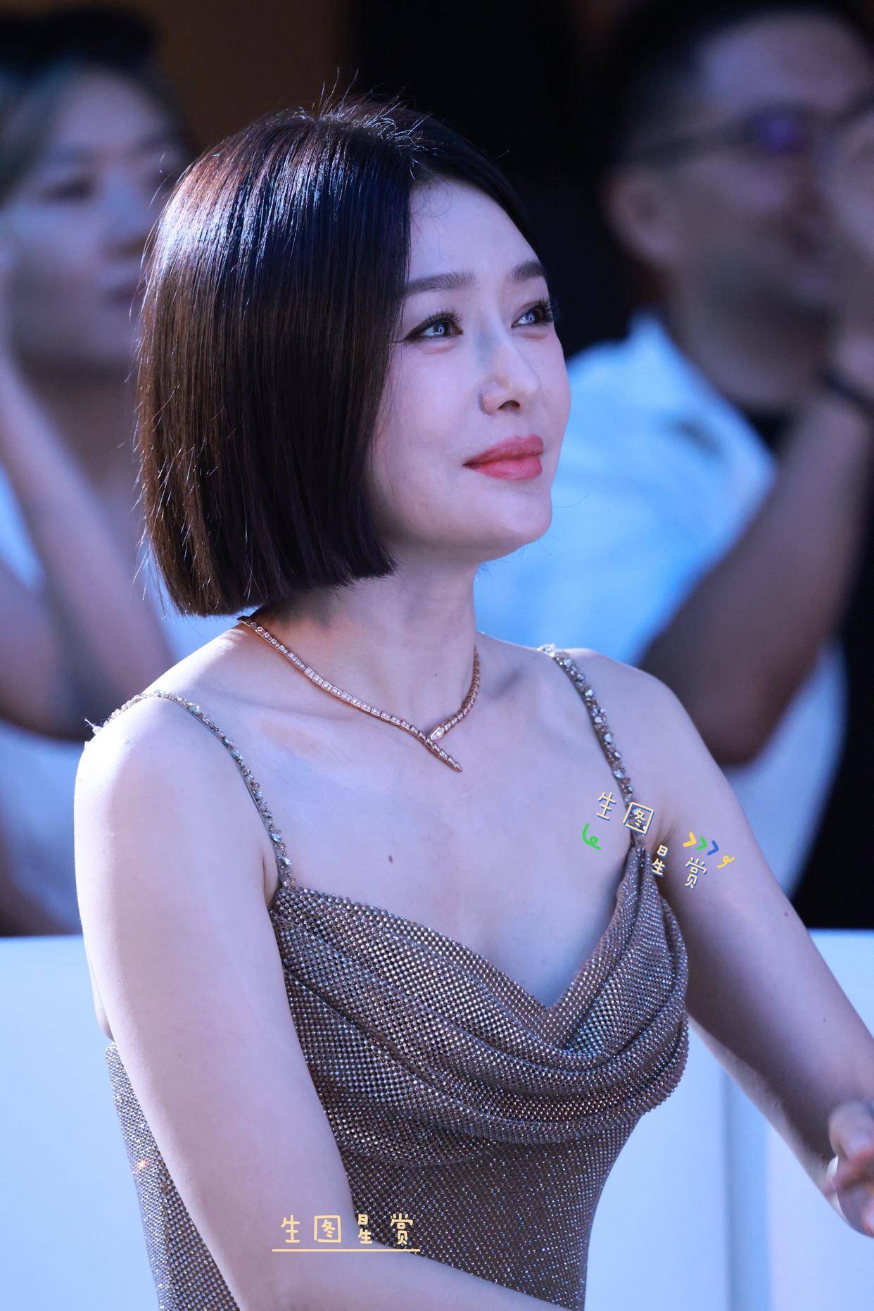 裙身的剪裁十分贴合秦岚的身形,从胸部到腰部,再到裙摆,每一处都紧致而流畅,展现出她完美的身材曲线。亮片在灯光下熠熠生辉,随着她的步伐轻轻摇曳,为整体造型增添了几分灵动与活力。这样的设计既经典又时尚,让秦岚在活动中成为了最耀眼的存在。