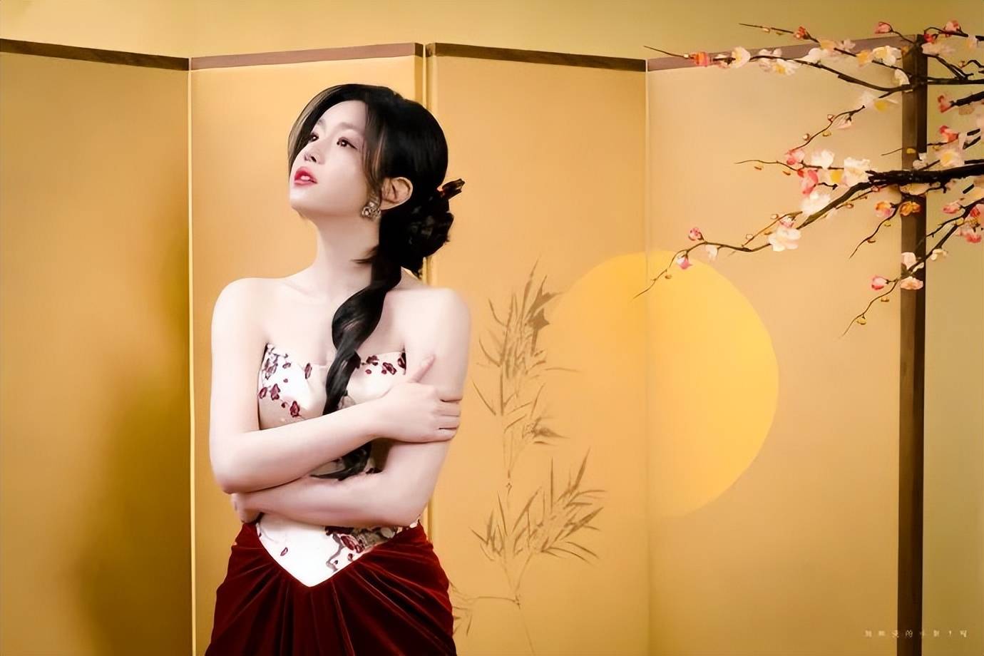 陈妍希穿腊梅白衣红裙露出事业线!曼妙身材性感撩人