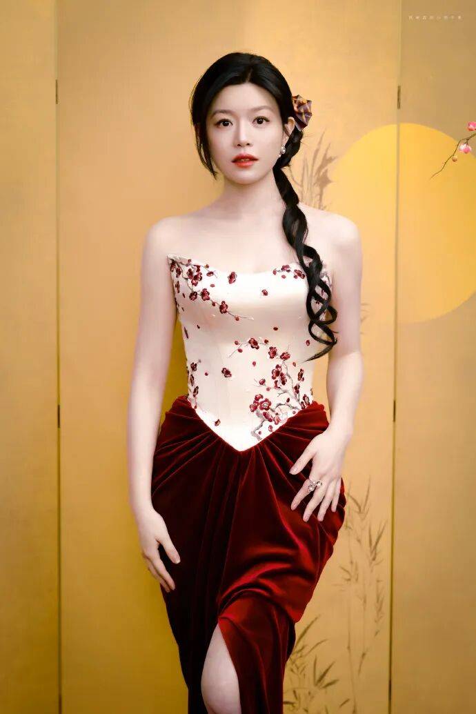 陈妍希身穿中式红裙,搭配蜡梅元素白衣,戴着白色珠宝项链,她俏脸温婉清丽,乌黑的秀发梳成麻花辫子,这位美女露出自己的香肩和事业线,既优雅有气质,又性感撩人!