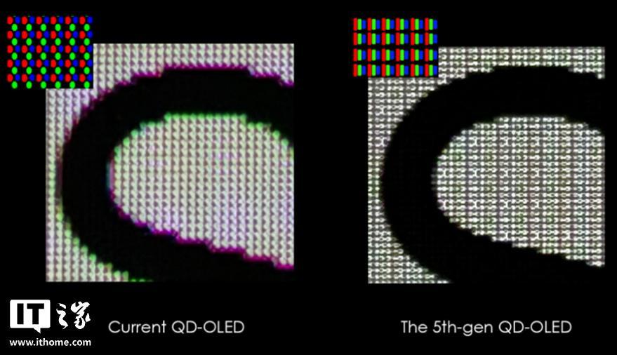 该型号基于串联 OLED 技术的“第五代”QD-OLED,RGB 条纹型子像素排列设计从根本上提升了显示质量:极大减少色彩边缘溢色的同时显著增强了文本清晰度。此外其面板硬度从 2H 提升至 3H,显著增强了抗刮擦能力。