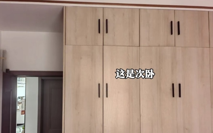 次卧室的衣柜比主卧室好一些,但也依旧是分成了三四层,每一个格子看起来都很零碎,无形间也让整间卧室显得格外尴尬突兀,类似这种柜子的问题,家里还有不少,就不再一一细说了,都是眼泪。