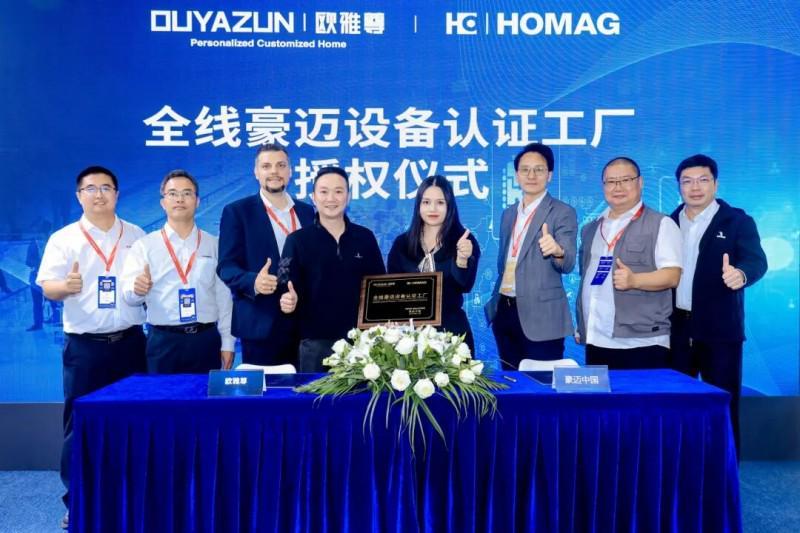 2023年,深度布局一线高端家居商圈,相继落子深圳宝能第一空间、上海凯旋路;2024年,完成工厂设备全线豪迈升级,全国门店突破十余店;2025年3月29日,欧雅尊与德国豪迈集团联合举办战略合作授权仪式,正式获颁“全线豪迈设备认证工厂”资质,成为华南地区高端全屋定制工厂首家实现豪迈全智能产线布局的全屋定制企业,标志着品牌在“智造”升级道路上迈出关键一步。