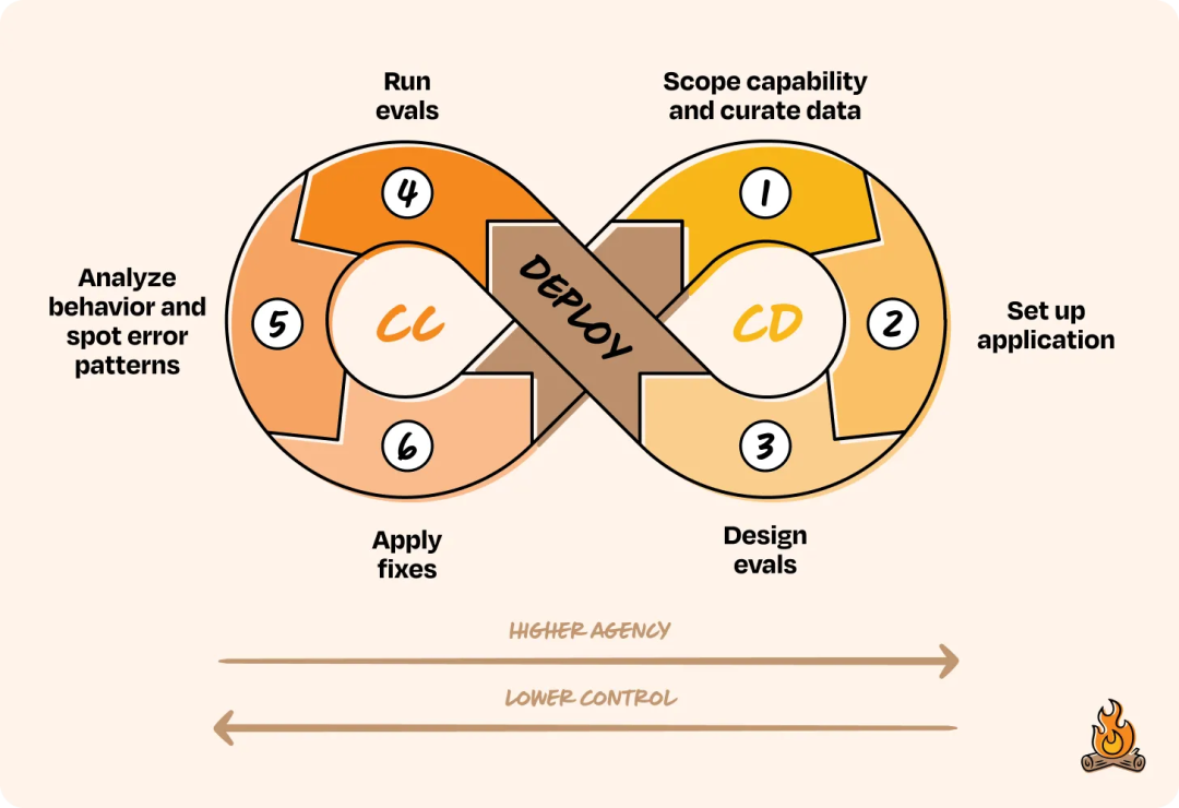 Evals 完全是“应用特定”的,和第一步确定的任务紧密相关。它评估的重点,不只是系统“是否在运行”,更是它在执行那些本质上非确定性的任务(比如总结文档或回答问题)时,表现得如何。这就是为什么 evals 没有统一的标准。它们就像信号一样,引导着迭代循环,帮助团队随时间调整和优化系统行为。