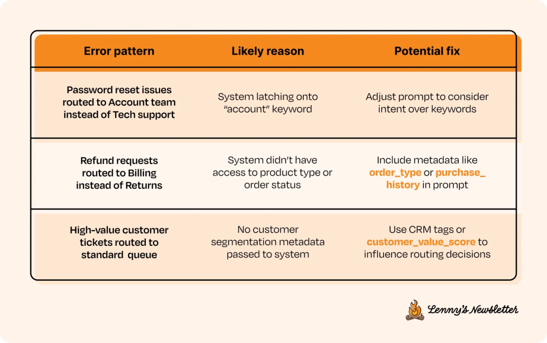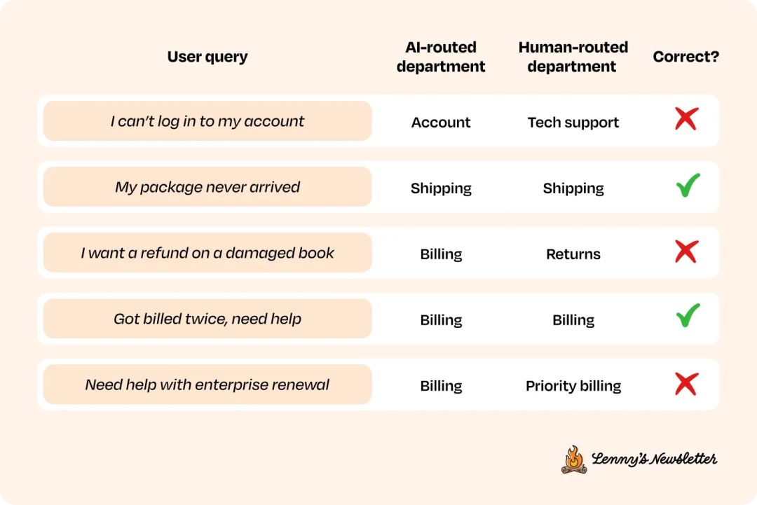 举一个简单的例子:一个退款请求,被错误地标记成了账单问题。系统因此拉取了错误的 SOP,并生成了一个看似合理但不正确的解决方案。最终,用户会感到困惑,并对产品失去信任。