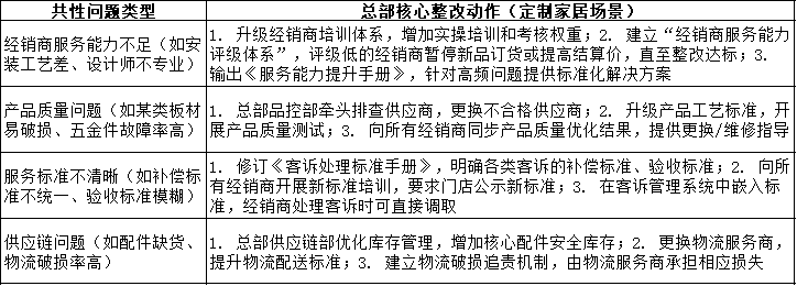 针对复盘发现的共性问题,总部牵头推动跨部门整改,从“产品、服务、供应链、经销商管理”四个维度,实现体系化优化,而非仅解决单个客诉。