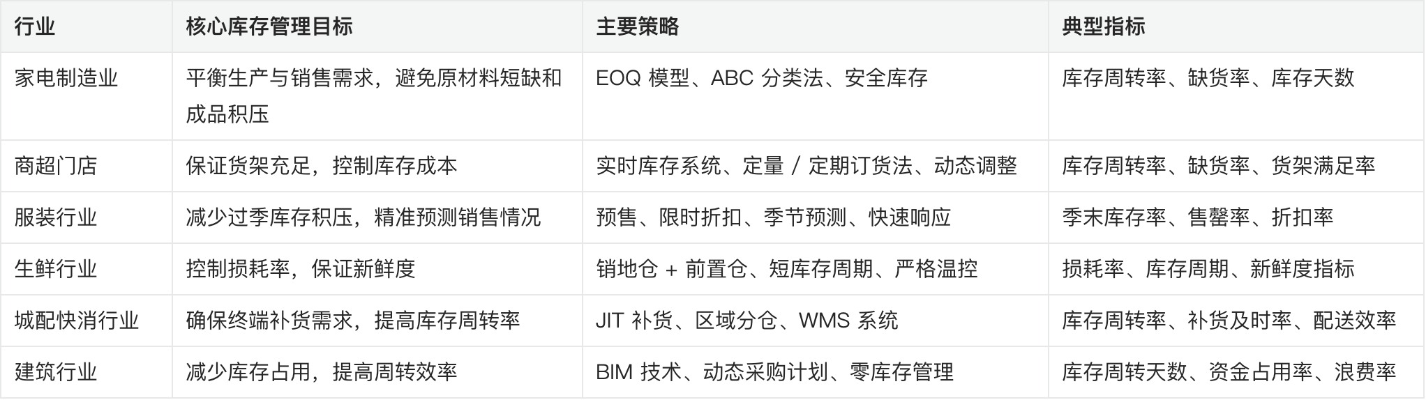 各行业的库存管理目标因行业特性和市场环境而有所不同,这直接影响其库存策略的制定和实施。