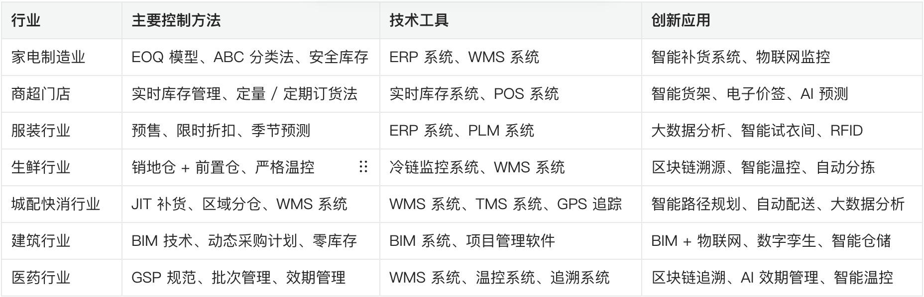 不同行业根据自身特点采用不同的库存控制方法和技术,这些方法和技术的有效性直接影响库存管理的效率和成本。