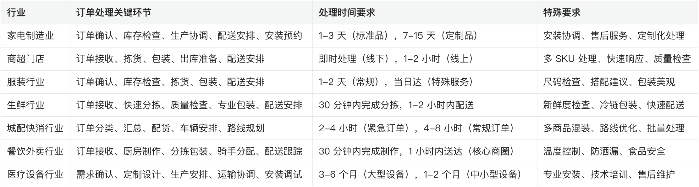 不同行业的订单处理流程因其业务模式和产品特性而有显著差异,这直接影响履约效率和客户满意度。