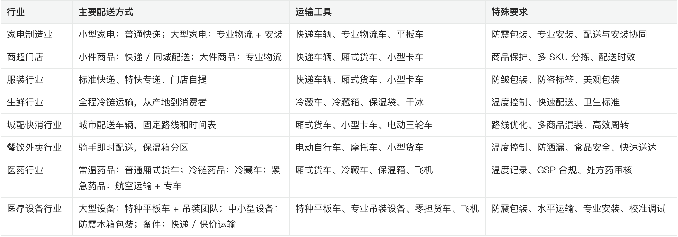 不同行业的配送方式和运输工具,因其产品特性、配送距离和客户需求,而有显著差异,这直接影响物流成本和履约效率。