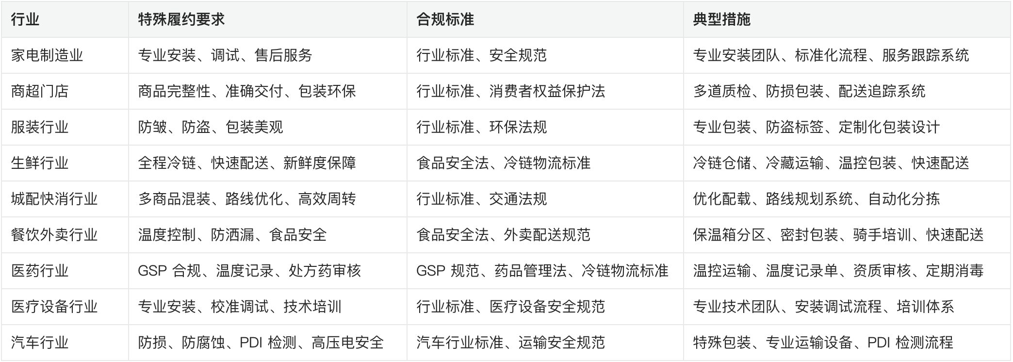针对不同行业的特性,企业需要采取差异化的履约优化策略,提高履约效率并降低履约成本。