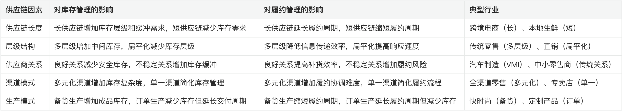 供应链结构是影响行业库存与履约管理差异的另一个关键因素,包括供应链长度、层级结构、供应商关系和渠道模式等方面。