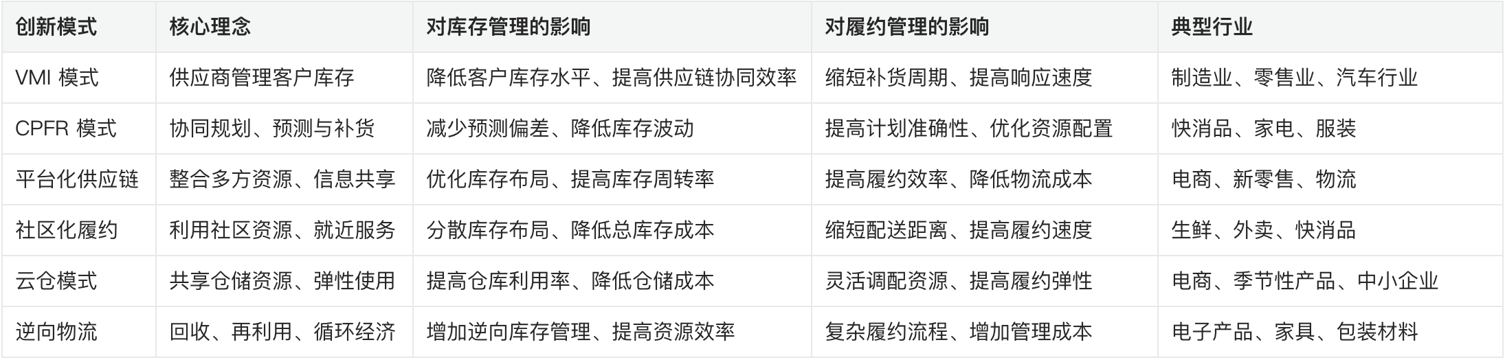 - 协同与创新是未来发展趋势:供应链协同和模式创新正在改变传统的库存与履约管理方式,提高整体效率和竞争力。例如,VMI、CPFR、平台化供应链等模式正在各行业广泛应用,提高了库存周转率和履约效率。