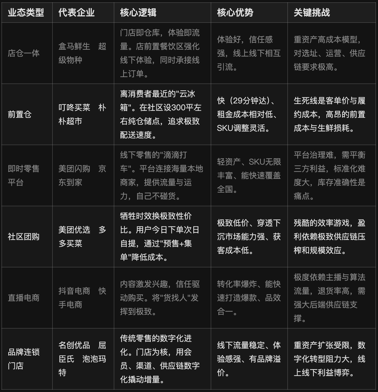 关键挑战:不够即时(次日达)、品控难(团长非专业零售从业者)、竞争激烈(至今无一家真正盈利)。