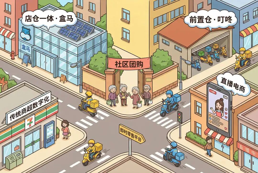未来零售生态将是多业态长期共存、相互渗透。你在抖音直播买的衣服,可能从本地仓发货(即时零售);在盒马买的零食,可能是通过社区团购模式从产地直采(供应链融合)。