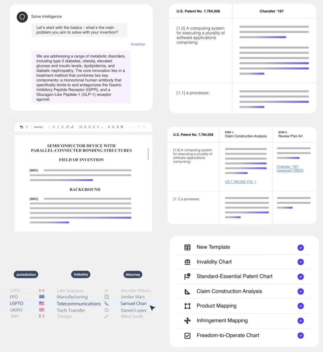 在Solve Intelligence上,一个律所的合伙人可以训练AI学习自己撰写专利要求的习惯,另一位合伙人则可以训练另一种风格。系统能根据案件所属的技术领域(生命科学、软件等)、目标司法管辖区(美国、欧洲等)甚至特定客户的需求,自动切换相应的风格和格式模板。