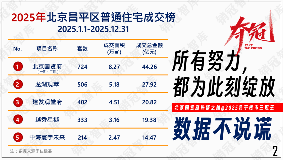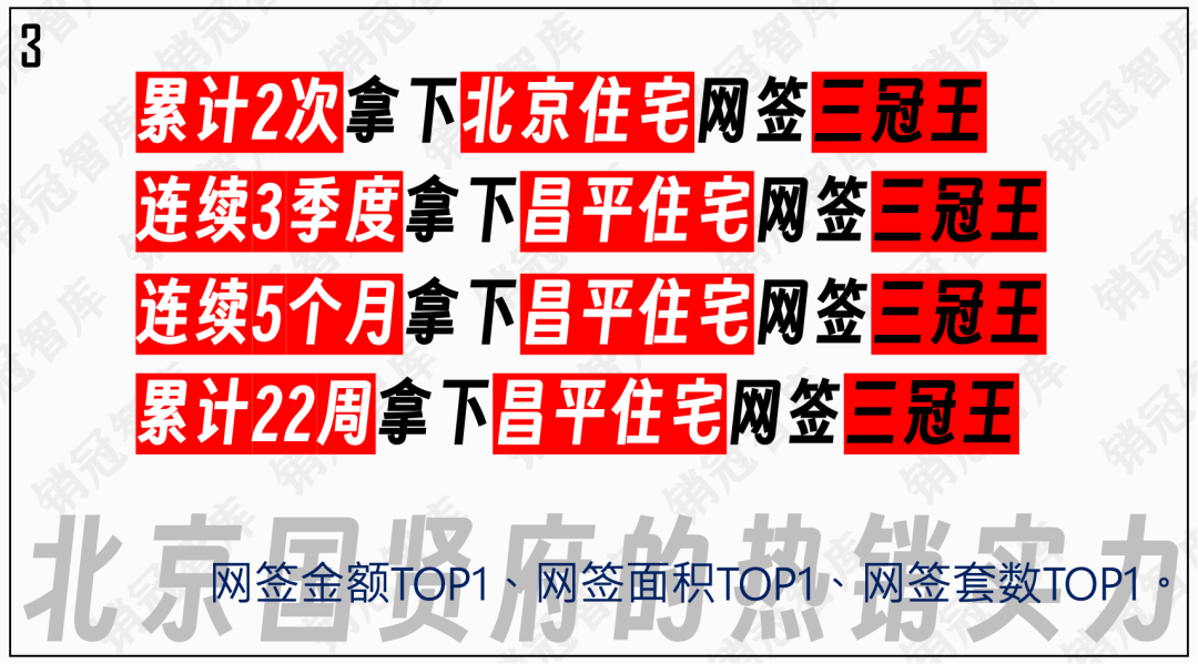 北京国贤府在拿下昌平区网签金额TOP1的同时,还拿下了网签面积TOP1,以及网签套数TOP1。