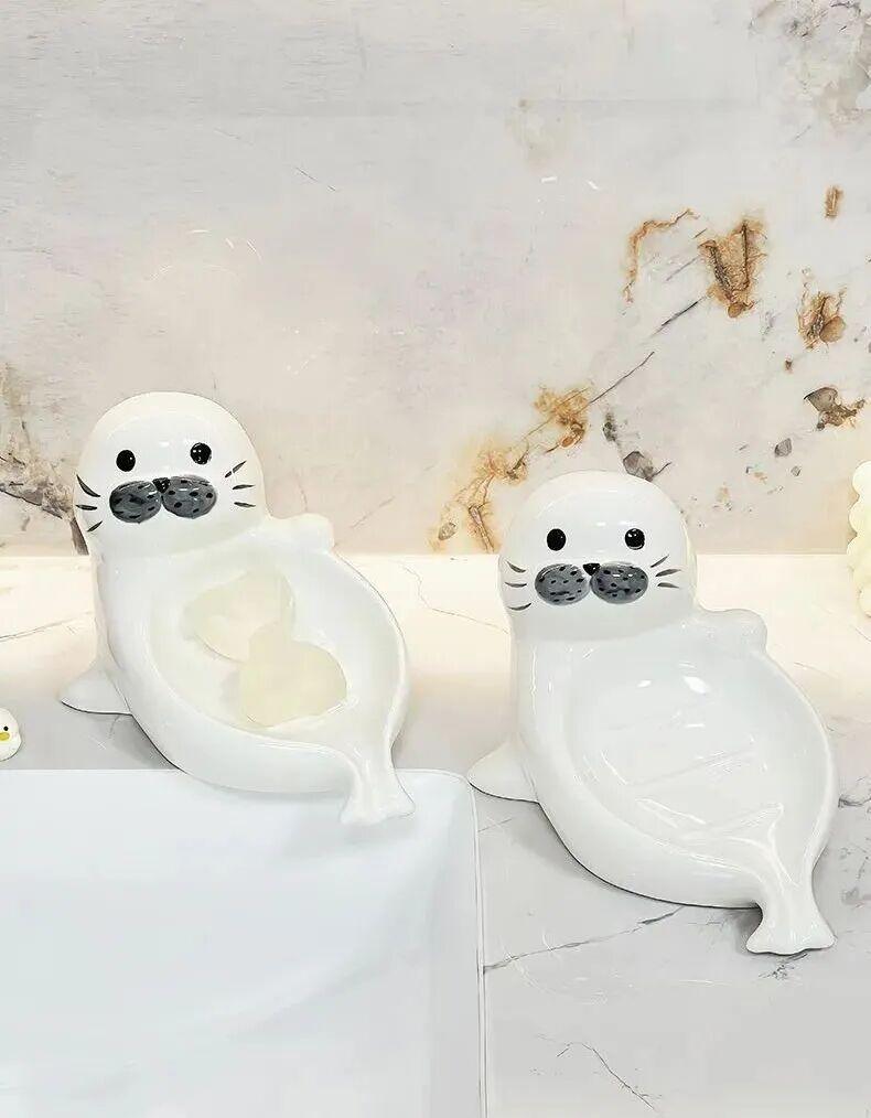 普通肥皂盒积水黏腻,打理麻烦?这只海豹不仅可爱,还是个沥水高手!肥皂放在上面干爽不粘底,大小肥皂都能塞。摆在洗手台,像个安静陪伴的小宠物。