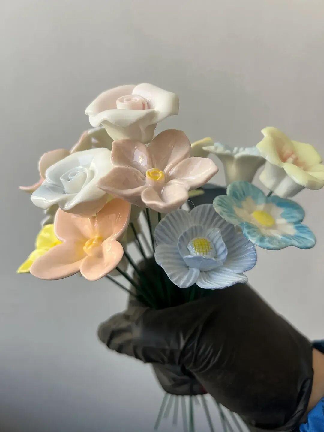 这陶瓷花我真的吹爆!实物比照片有质感太多,花瓣纹理都很细腻。自己随便插一瓶,或者包成花束送人,显得特别有品味~不用浇水不会谢,一直美下去。