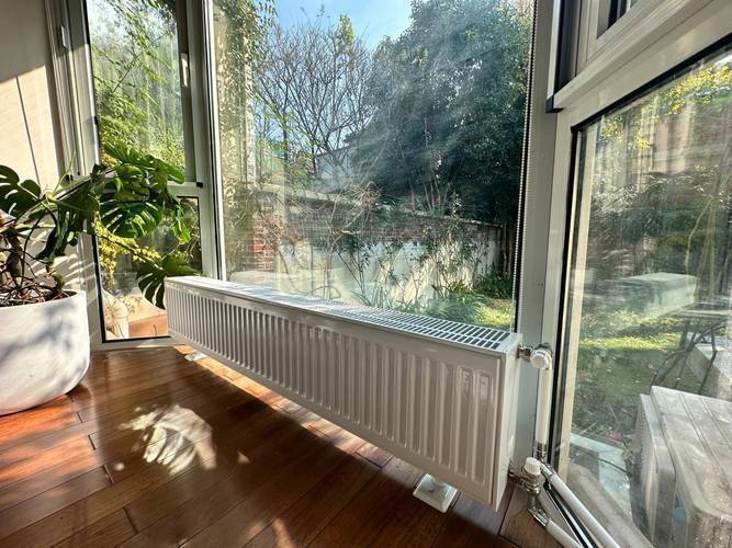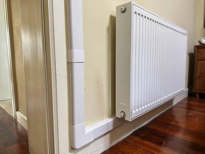 就在人们对地暖望而却步的时候,一批新的取暖方式已经悄然占据了市场。 踢脚线暖气片是其中增长最快的品类之一,它直接替代了房间四周的装饰踢脚线,内部是金属水道和散热片。 冷水在内部加热后,通过热空气上升、冷空气下沉的对流原理,以及向室内的辐射散热,能在20分钟内让室温明显上升。 热量利用效率比传统墙挂式暖气片高出约15%,这意味着更少的能量浪费。 安装时几乎不占用墙面和地面空间,维护时只需卸下踢脚线面板,对装修的破坏接近于零。