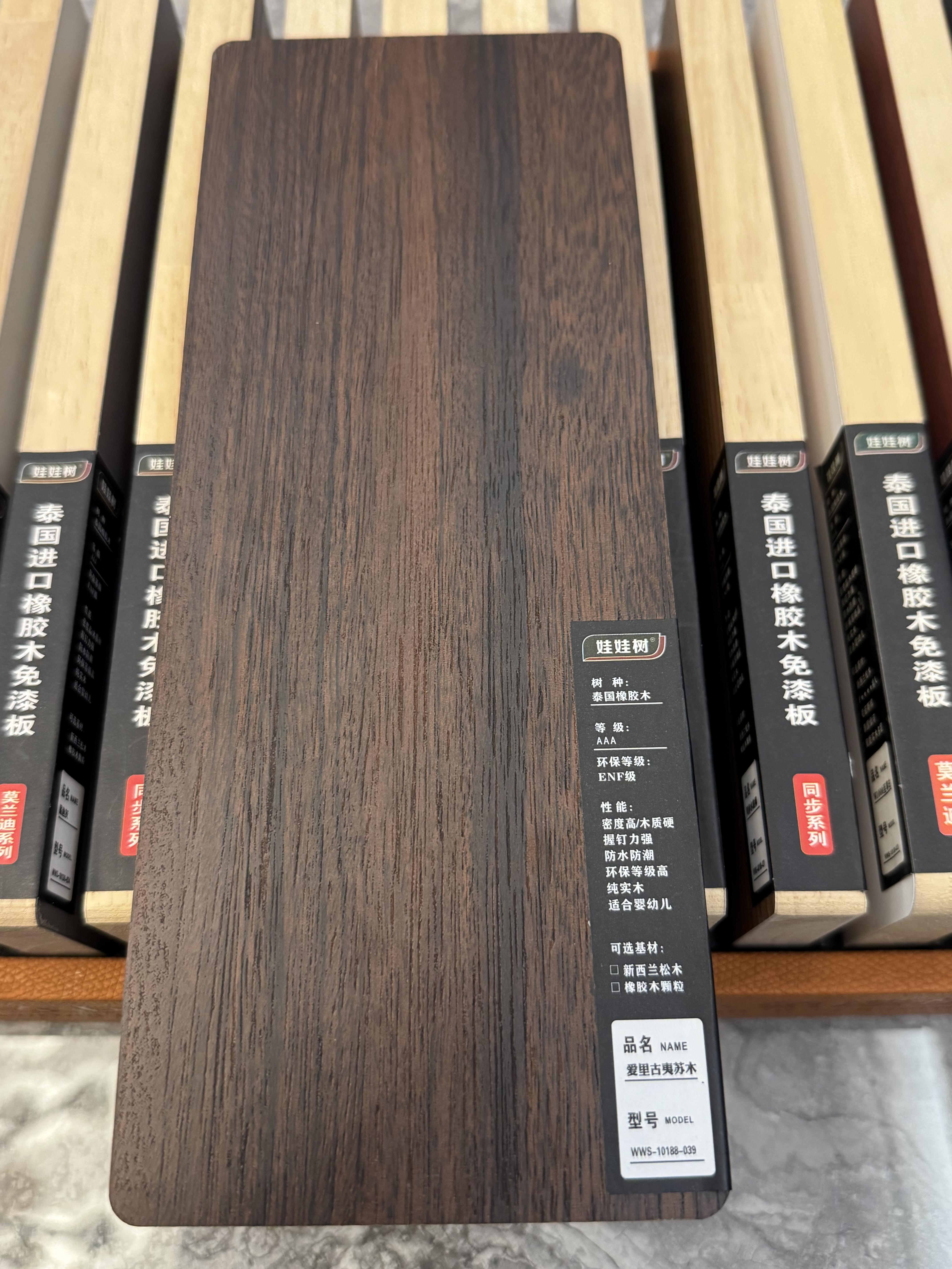 娃娃树板材:精选泰国3A橡胶木、新西兰松木等进口纯实木基材,密度0.6-0.7g/cm³,纹理连贯无拼接,含天然乳胶成分抗湿性优异,含水率控制在黄金区间;