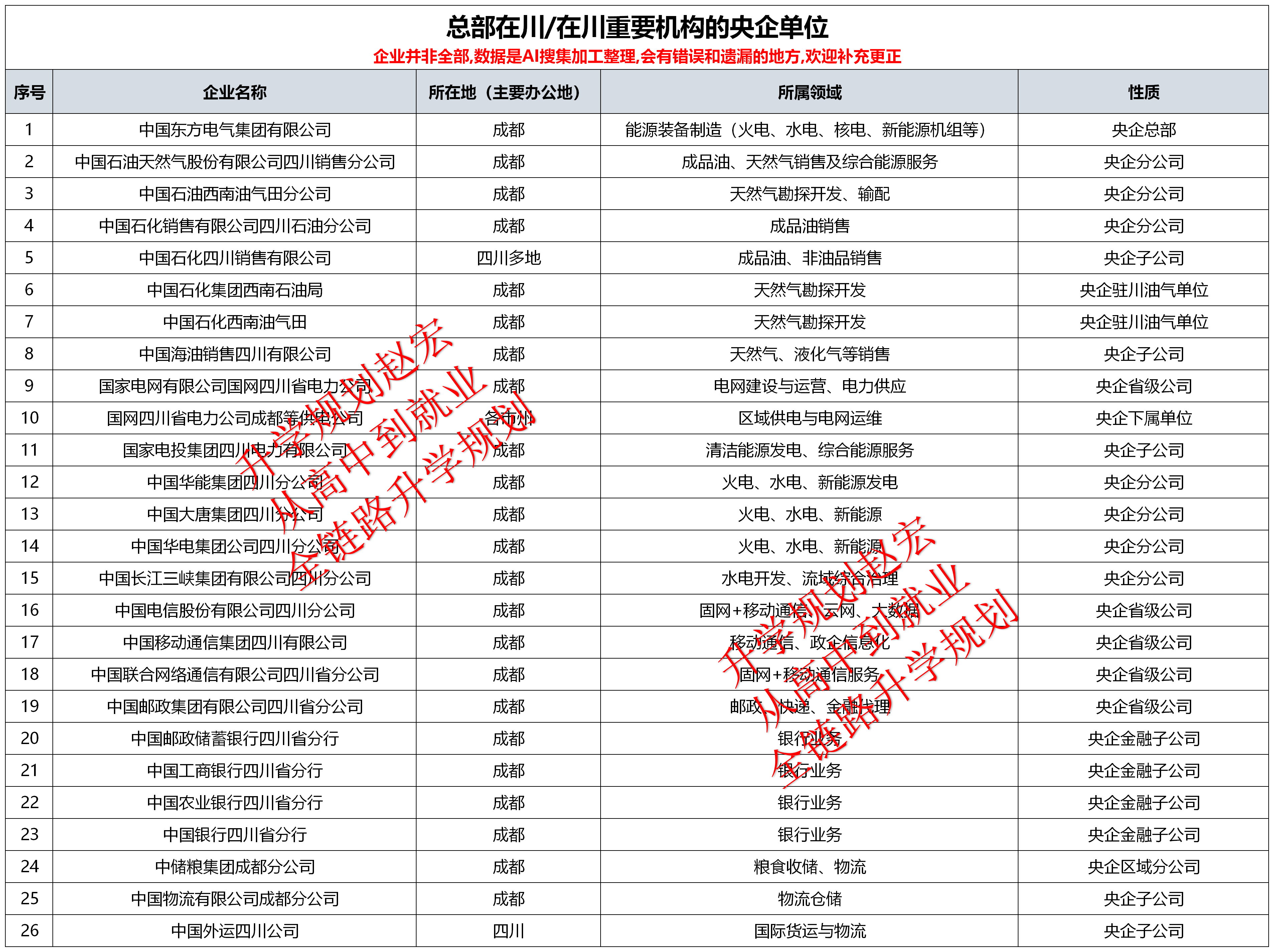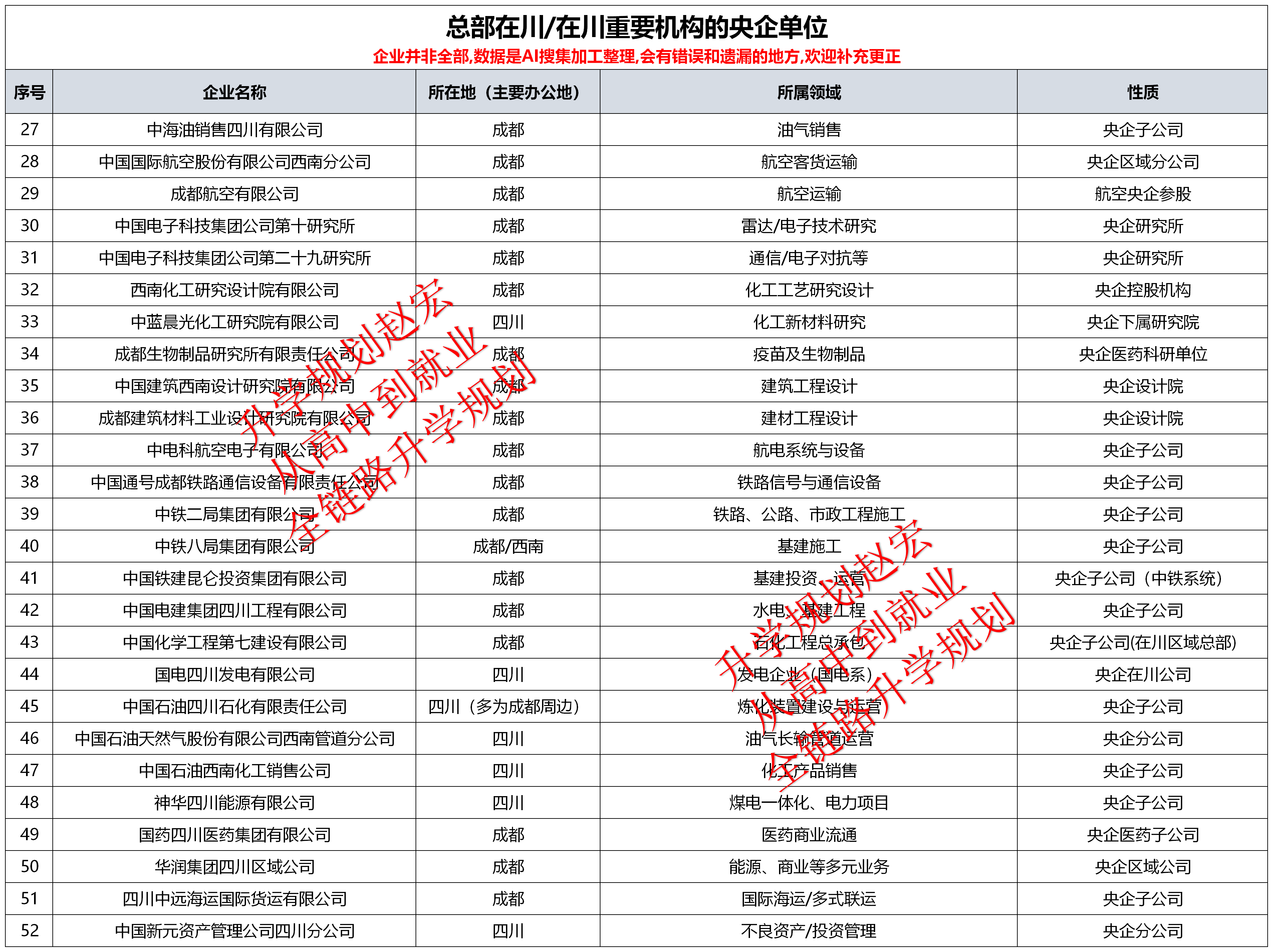 对于求职和志愿填报最该优先关注的一批,要么是唯一总部在川的央企,要么是在川有完整业务链、省级公司或区域总部的单位。同样这部分单位对学历要求也越来越高,未来的趋势是硕士研究生是标配,同时很多单位的也会细分,这就意味着要求不一样,大家可以差异化去准备。